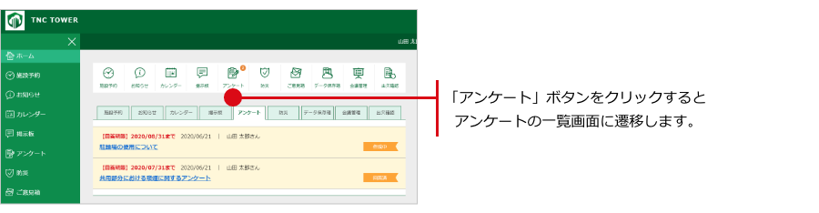 「アンケート」ボタンをクリックするとアンケートの一覧画面に遷移します。