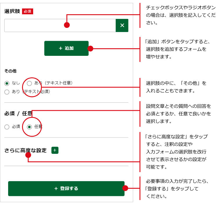 「追加」ボタンをタップすると、選択肢を追加するフォームを増やせます。