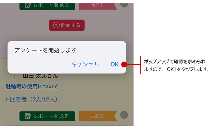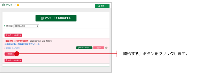 ※アンケートを開始すると、以後添付ファイルを含め、一切の編集ができなくなりますのでご注意ください。 また、開始した時点で本登録済みの方のみアンケートに回答可能です。