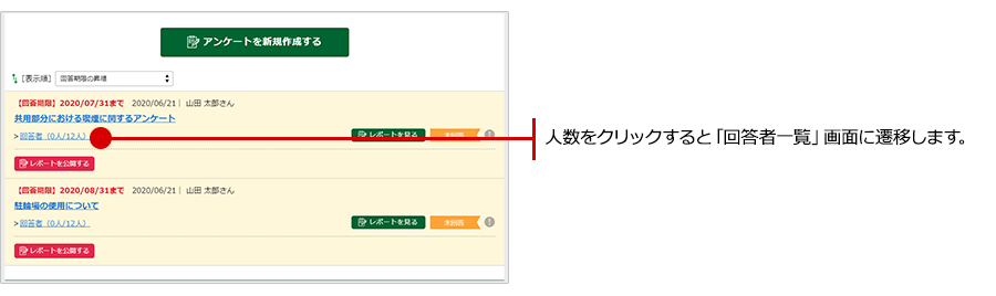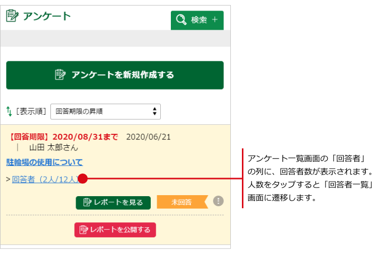 人数をクリックすると「回答者一覧」画面に遷移します。