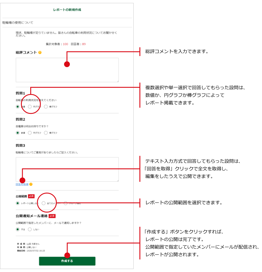 アンケートレポートを編集・公開する方法は?