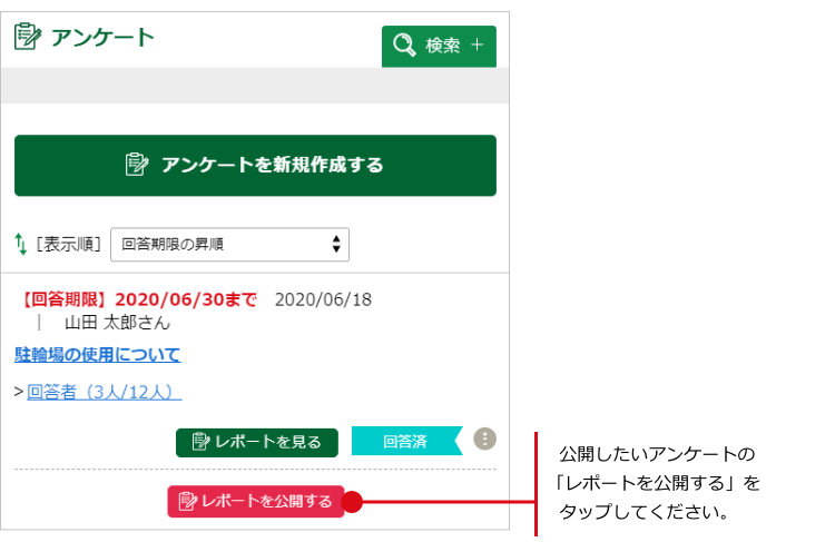編集したいアンケートの「レポートを公開する」をタップしてください。
