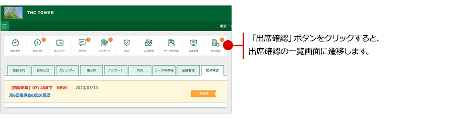 タイトルをクリックすれば、その出欠確認の詳細画面に遷移します。