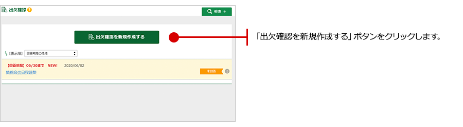 出欠確認ページの「出欠確認を新規作成する」ボタンをクリックします。