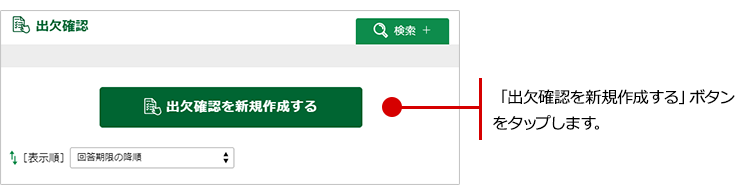 出欠確認ページの「出欠確認を新規作成する」ボタンをタップします。