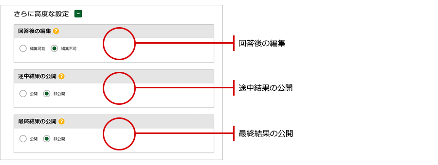 「公開」選択時は、回答者や回答内容が他の回答者にも公開されます。
