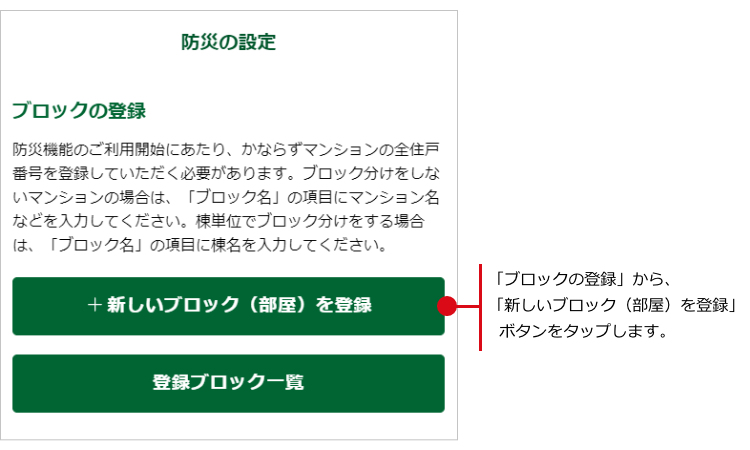 「ブロックの登録」から、「新しいブロック(部屋)を登録」ボタンをタップします。