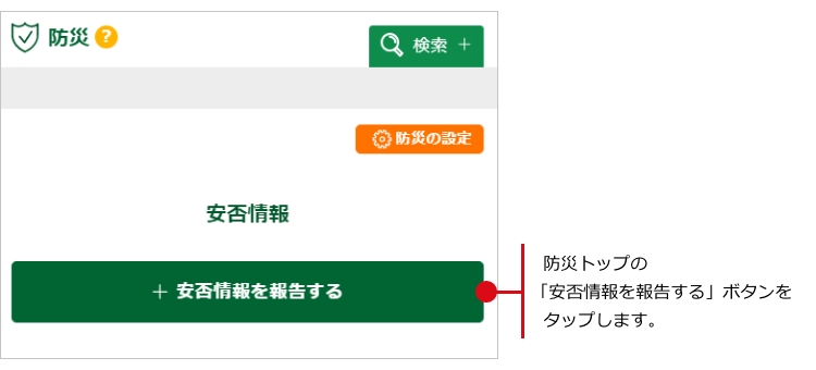 防災トップの「安否情報を報告する」ボタンをタップします。