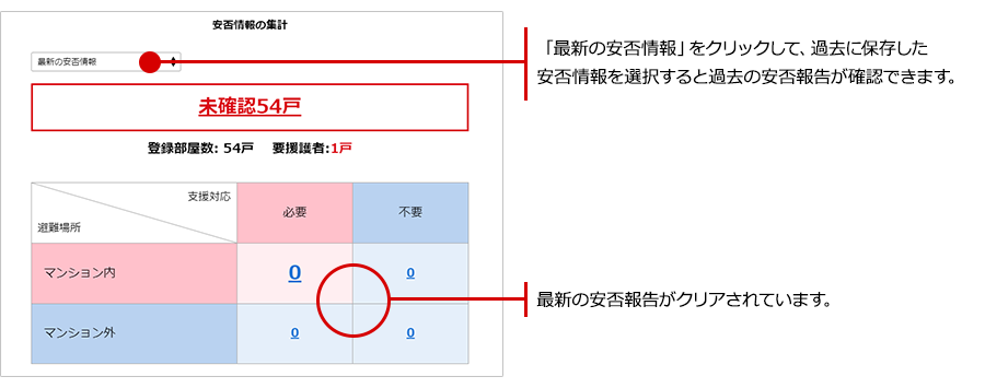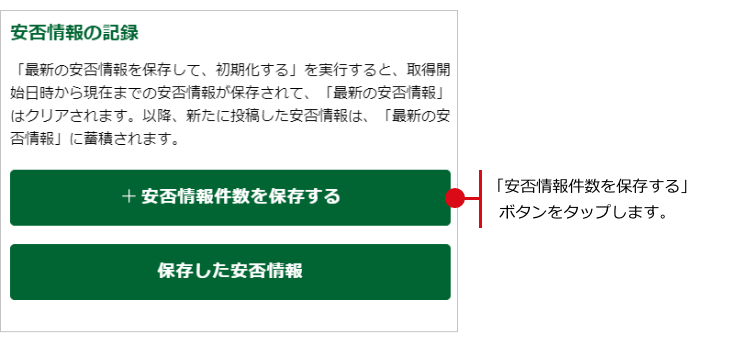 安否情報が保存されて、「最新の安否情報」はクリア(初期化)されます。