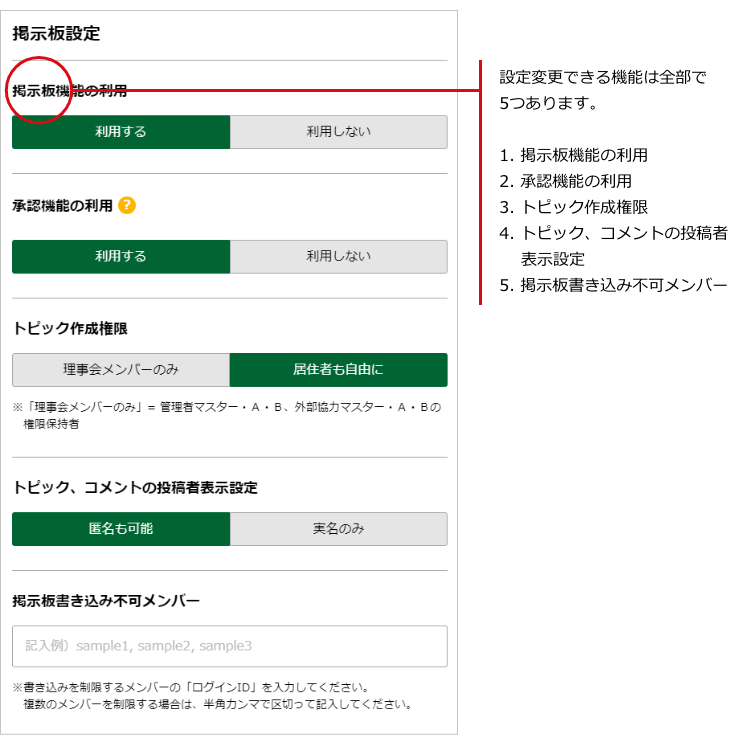 マンション理事会として、掲示板機能を使うか使わないかを選択できます。