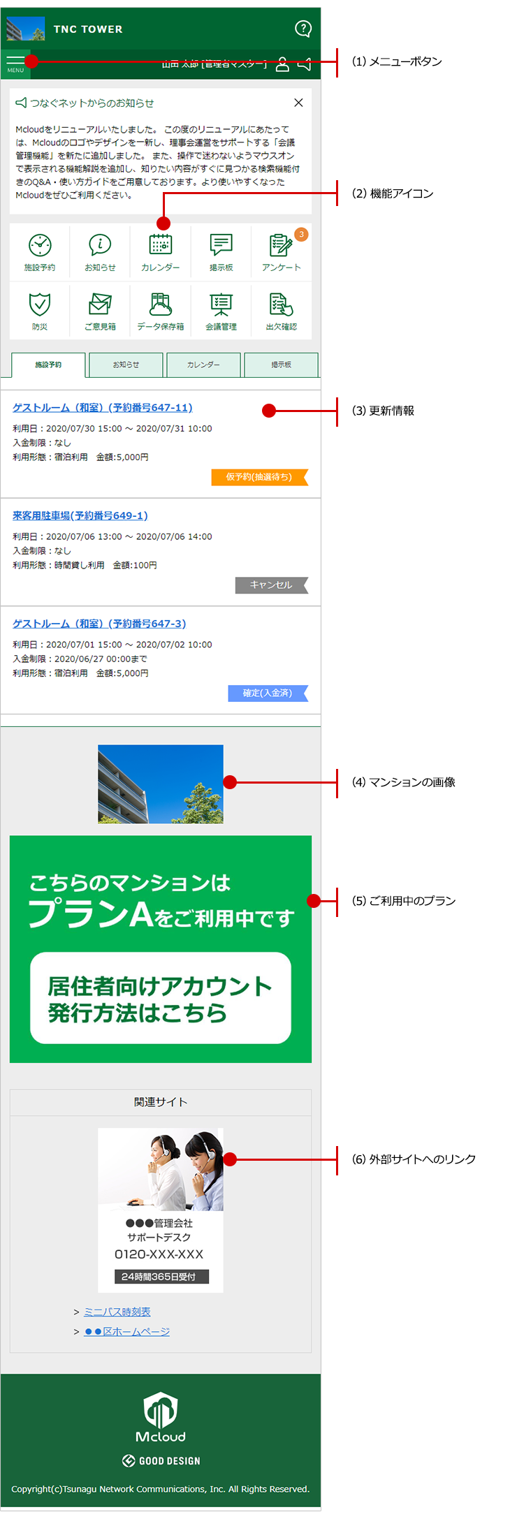 マンションに登録されているメンバー全員のトップページに表示されます。