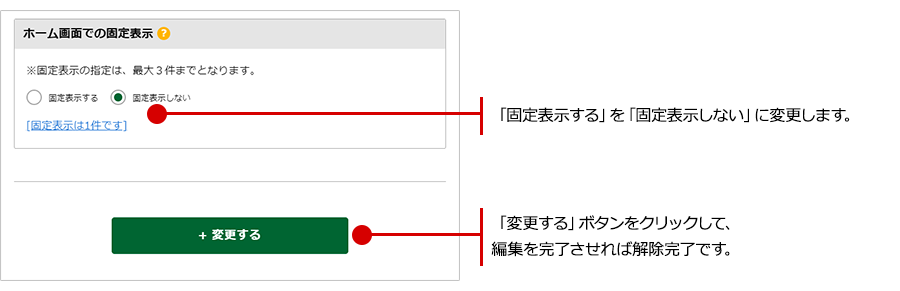 「変更する」ボタンをクリックして、編集を完了すれば固定表示が解除されます。