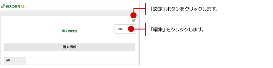 画面右上にある、「設定」ボタンから、「編集」をクリックします。