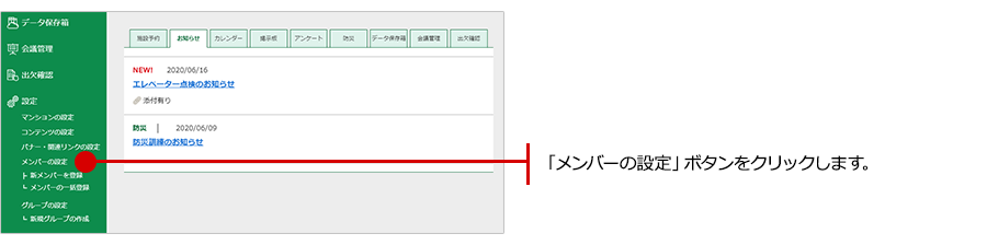 ナビゲーションの中の「メンバーの設定」をクリックします。
