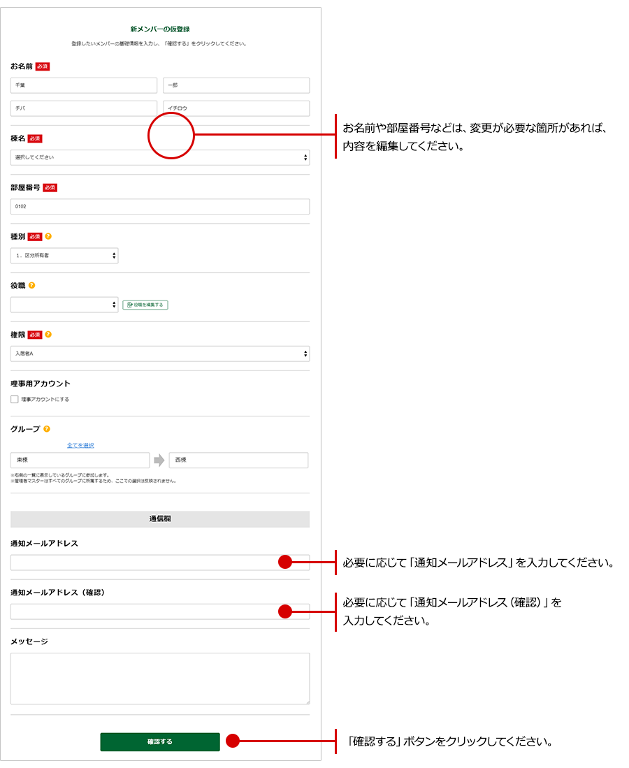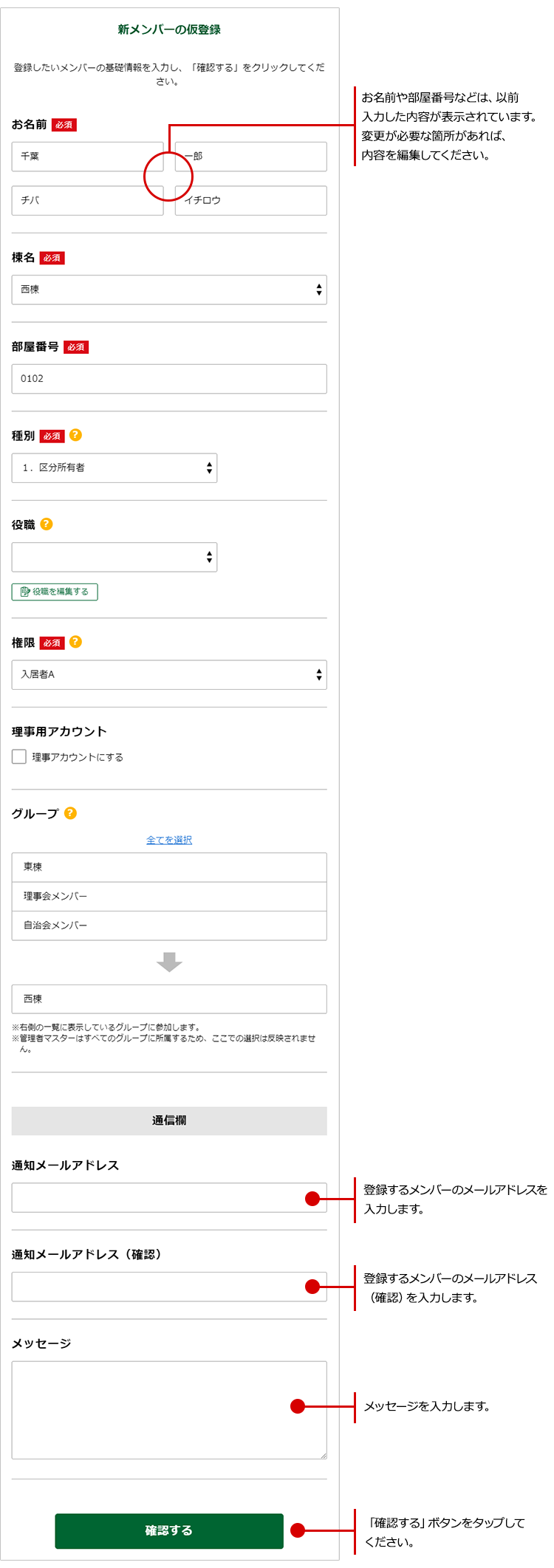 ※本登録が完了しているメンバーに対して、この操作は実施できません。