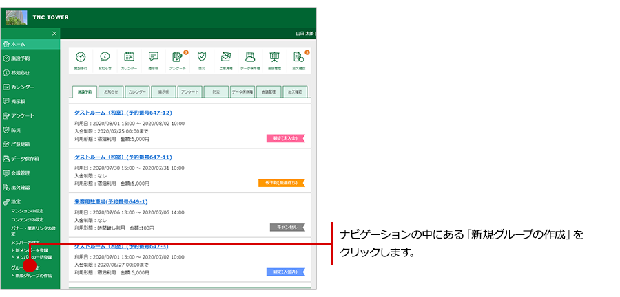 ナビゲーションの中にある「新規グループの作成」をクリックします。