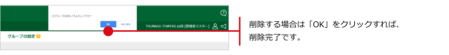 「このグループを削除してもよろしいですか?」という確認ウィンドウが表示されるので、