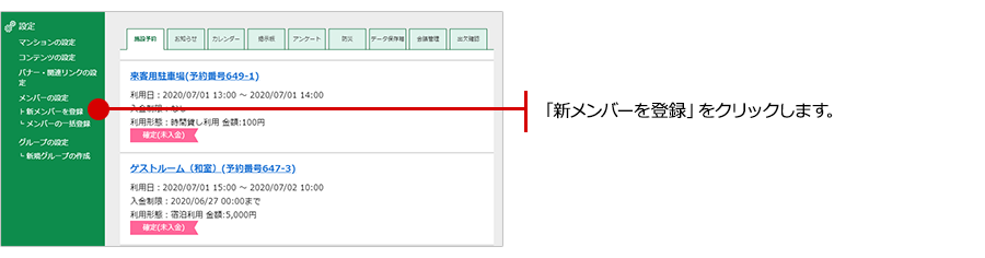 ナビゲーションの中にある「新メンバーを登録」をクリックします。