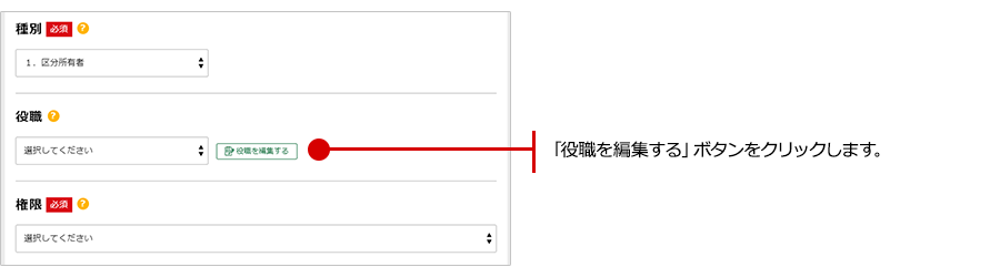 「役職」の項目にある「役職を編集する」ボタンをクリックします。