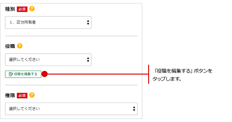 「役職」の項目にある「役職を編集する」ボタンをタップします。