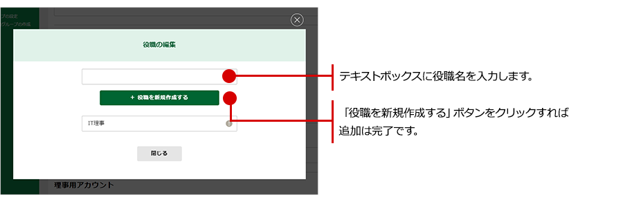 テキストボックスに役職名を入力し、「役職を新規作成する」ボタンを