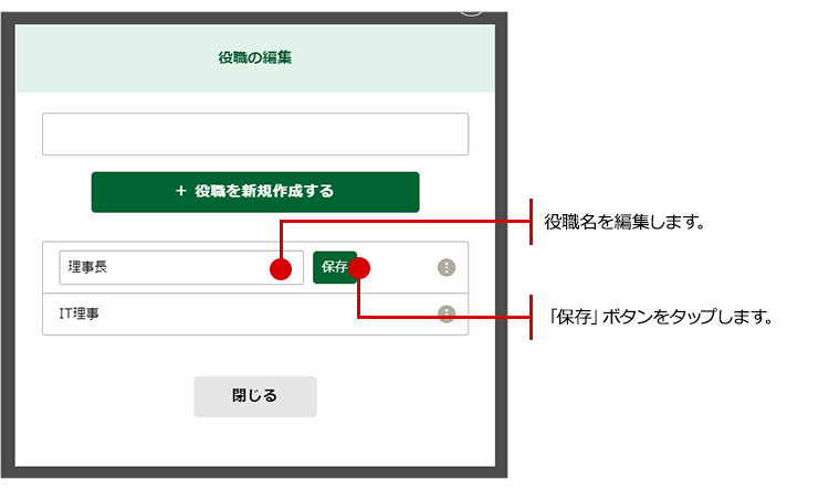 編集可能な状態となりますので、役職名を編集し、「保存」ボタンをタップすれば、編集は完了です。
