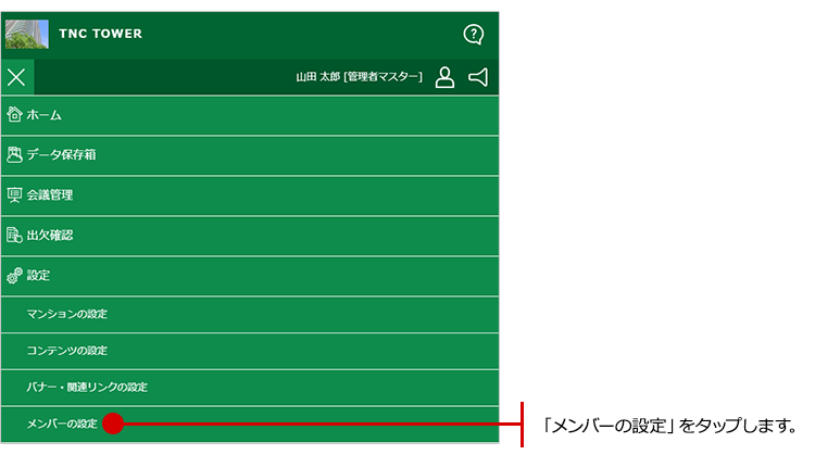 ナビゲーションの中の「メンバーの設定」をクリックします。
