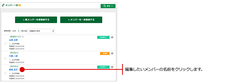 メンバー一覧が表示されますので、編集したいメンバーの名前をクリックします。