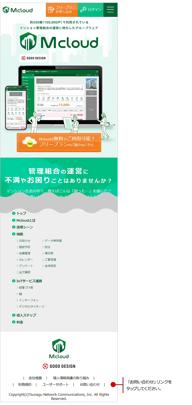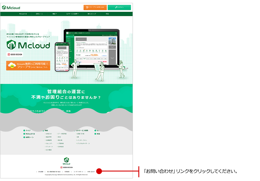 Mcloudの「お問合わせ」フォームからお申込みいただきます。