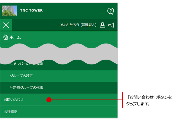 ログイン後ページの「お問い合わせ」ボタンをタップします。
