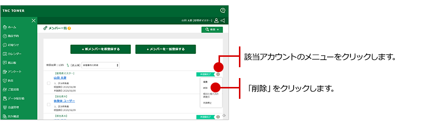 居住者が転居する場合のアカウント削除方法について:Cプラン(管理者向け)