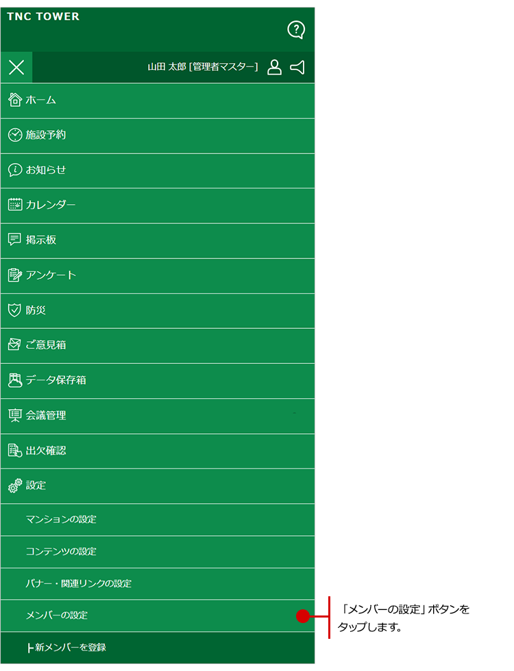 メニュー内の「メンバーの設定」ボタンをタップします。