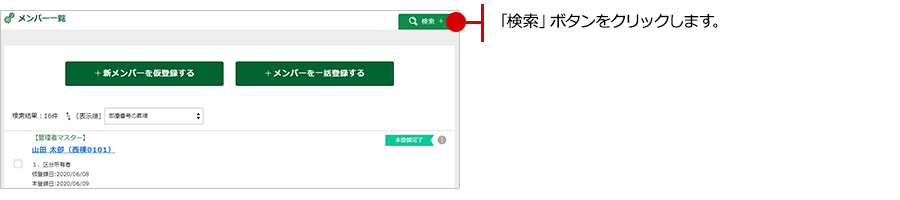 メンバー一覧の右上に表示されている「検索」ボタンをクリックします。