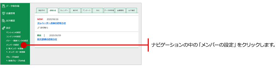 ナビゲーションの中の「メンバーの設定」をクリックします。