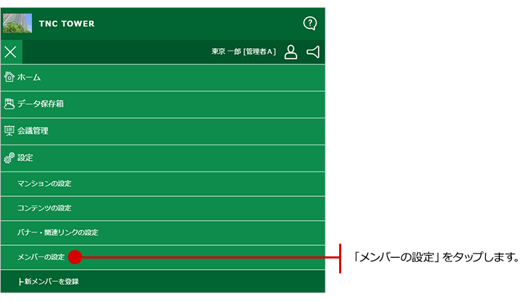 ナビゲーションの中の「メンバーの設定」をタップします。
