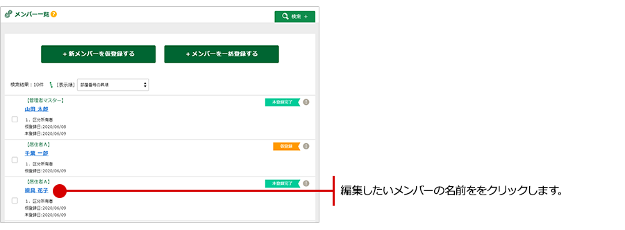 メンバー一覧が表示されますので、編集したいメンバーの名前ををクリックします。