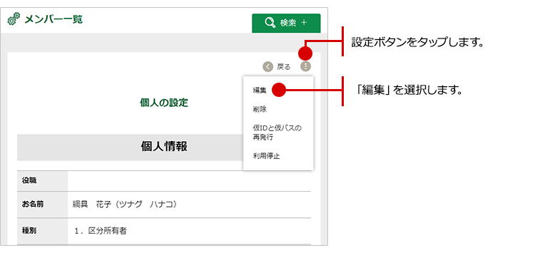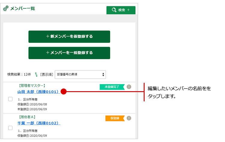 メンバー一覧が表示されますので、編集したいメンバーの名前ををタップします。