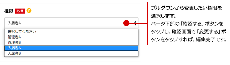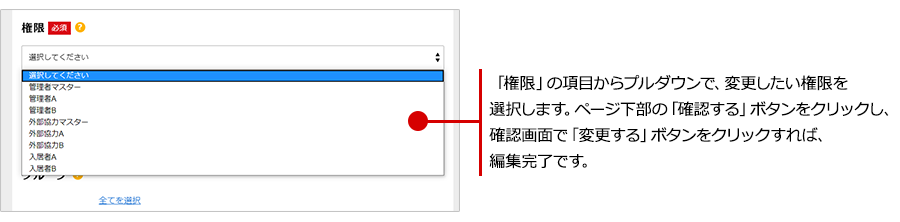 「権限」の項目からプルダウンで、変更したい権限を選択します。