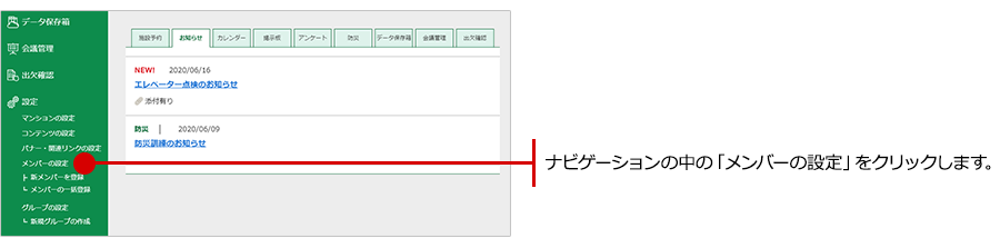 ナビゲーションの中の「メンバーの設定」をクリックします。