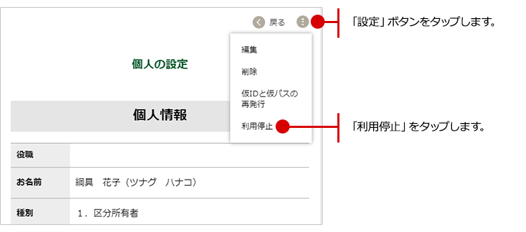 アカウントの利用停止を行うと、対象者はログインできなくなります。