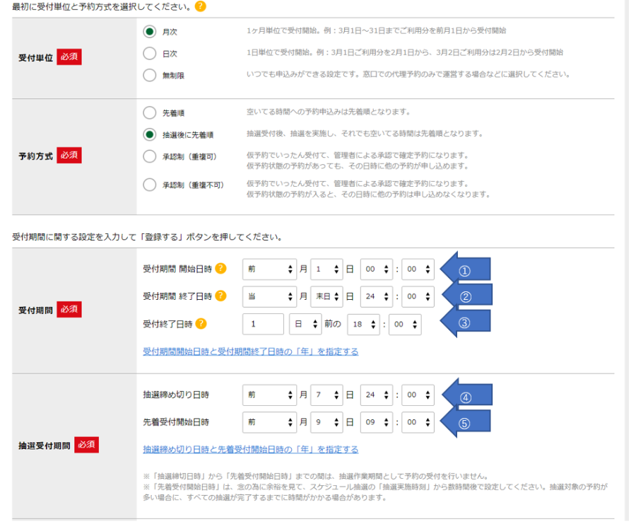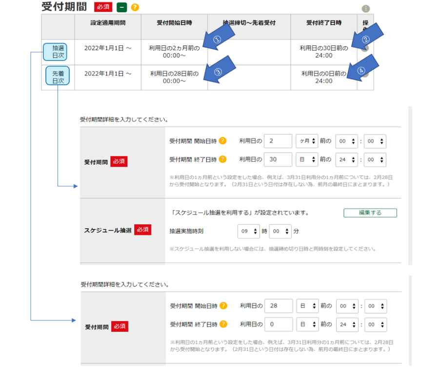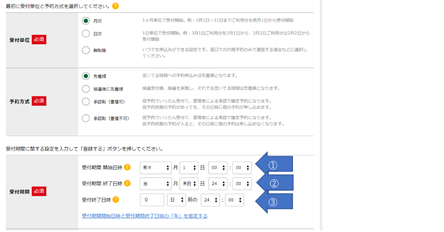 施設予約の設定:「受付期間」について(管理者向け)