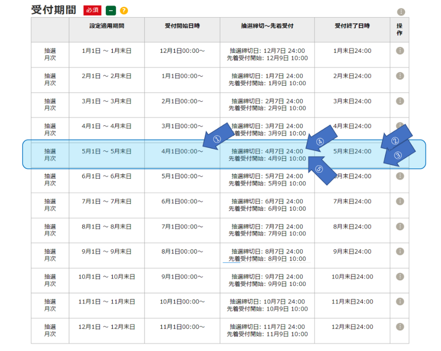 4)抽選締め切り日時 ⇒ 前月 7日 24:00まで