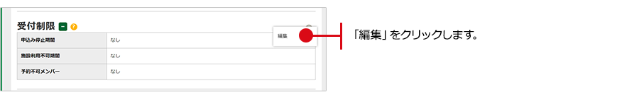 「受付制限」右側のグレーの丸を選択し「編集」を選択してください。