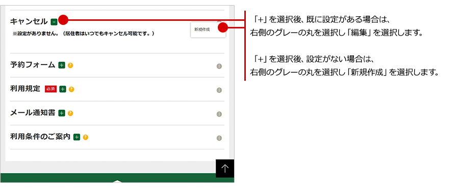 予約状態が「確定(入金済)」でも③もしくは④で設定した期間までは居住者権限でキャンセルが可能です。ただし、返金手続きが別途必要な場合は、別途窓口に来ていただく必要があります。