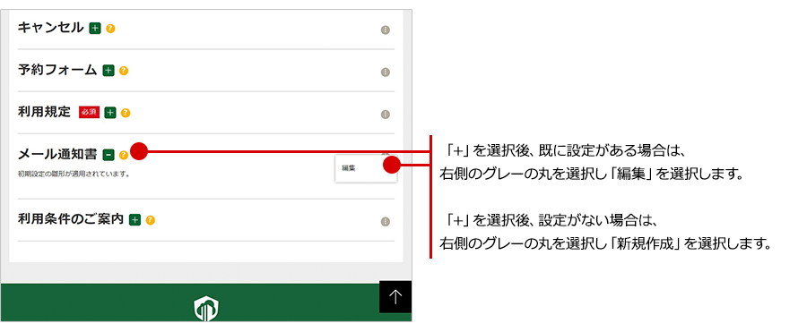 仮予約や予約確定、キャンセル時にメールで通知する文言を変更できます。