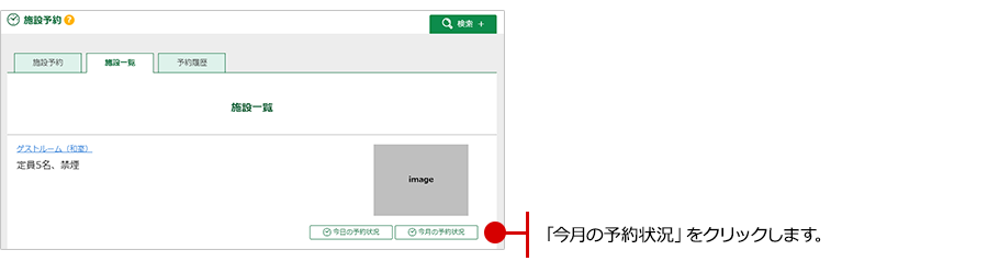 空き状況を確認したい施設の「今月の予約状況」をクリックします。