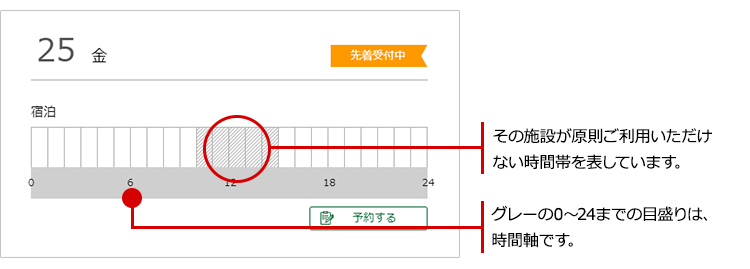 白い背景の時間帯は、予約の申込みができる時間帯を表しています。