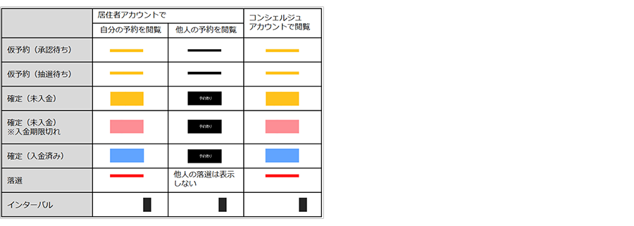 ・黒い帯で「予約あり」または「管理組合利用」と表示されています。