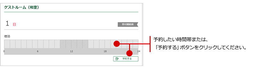 予約したい時間帯または、「予約する」ボタンをクリックしてください。