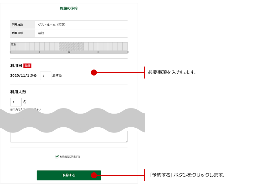 内容を確認し、問題がなければ、「予約する」ボタンをクリックします。